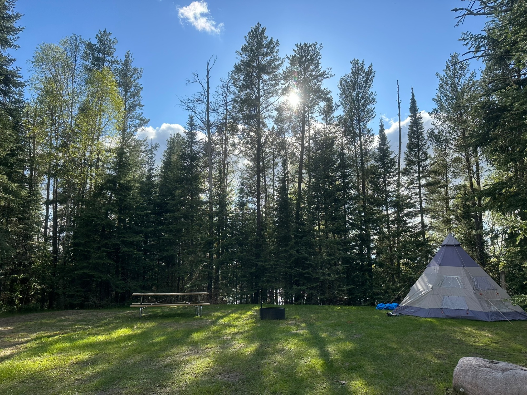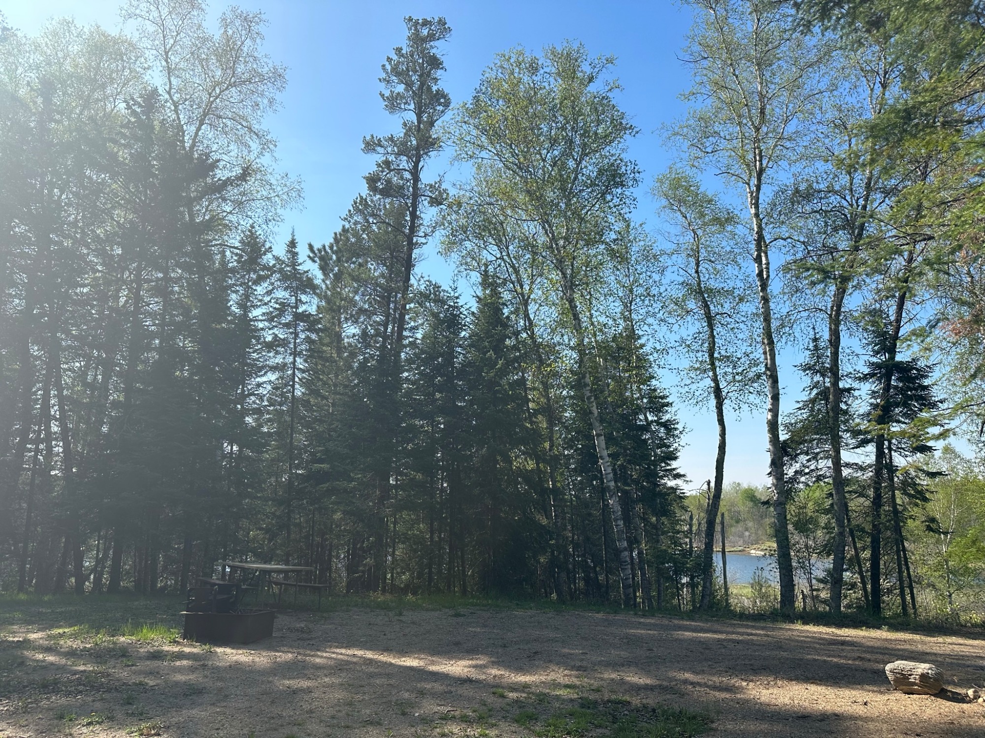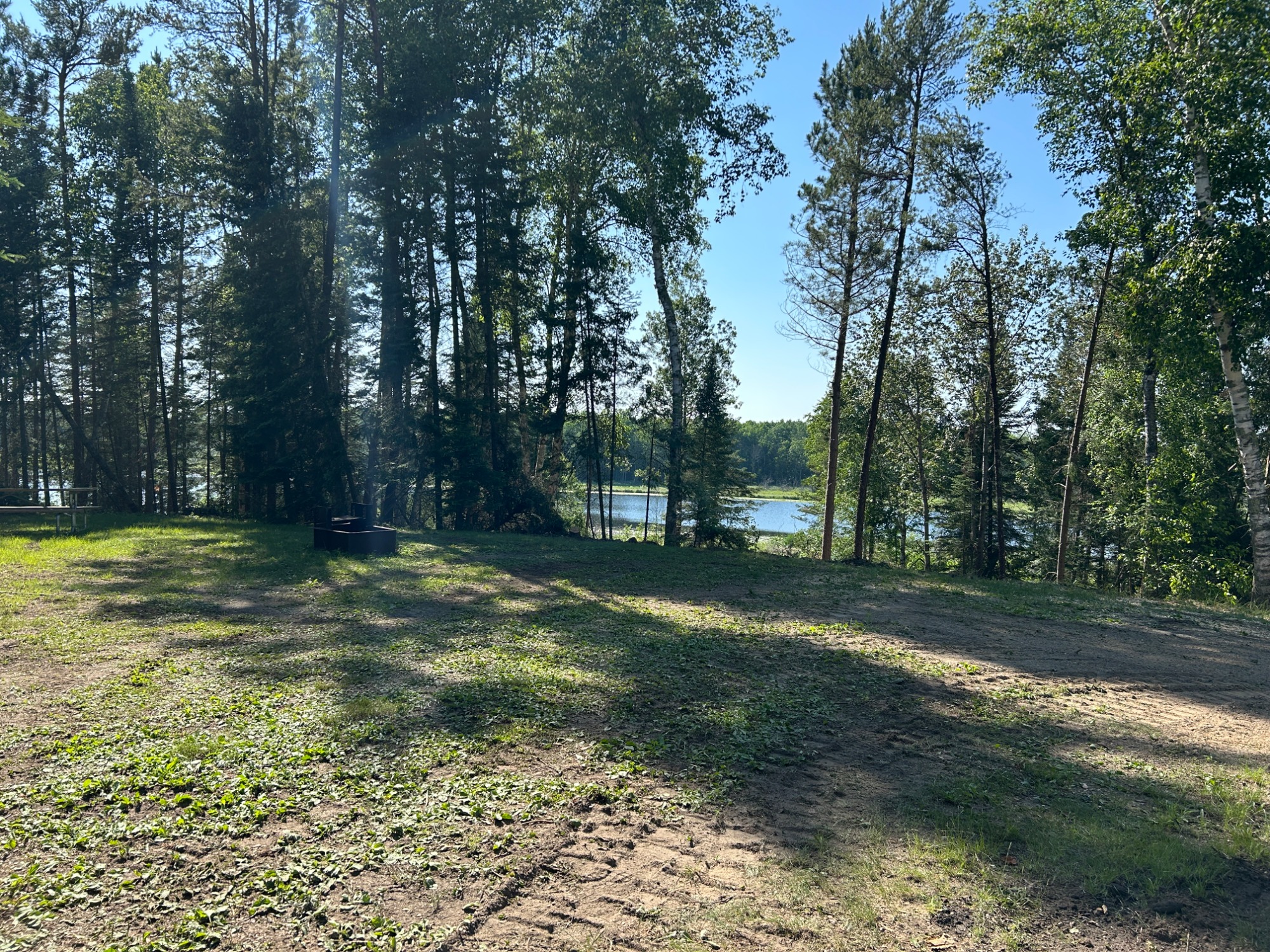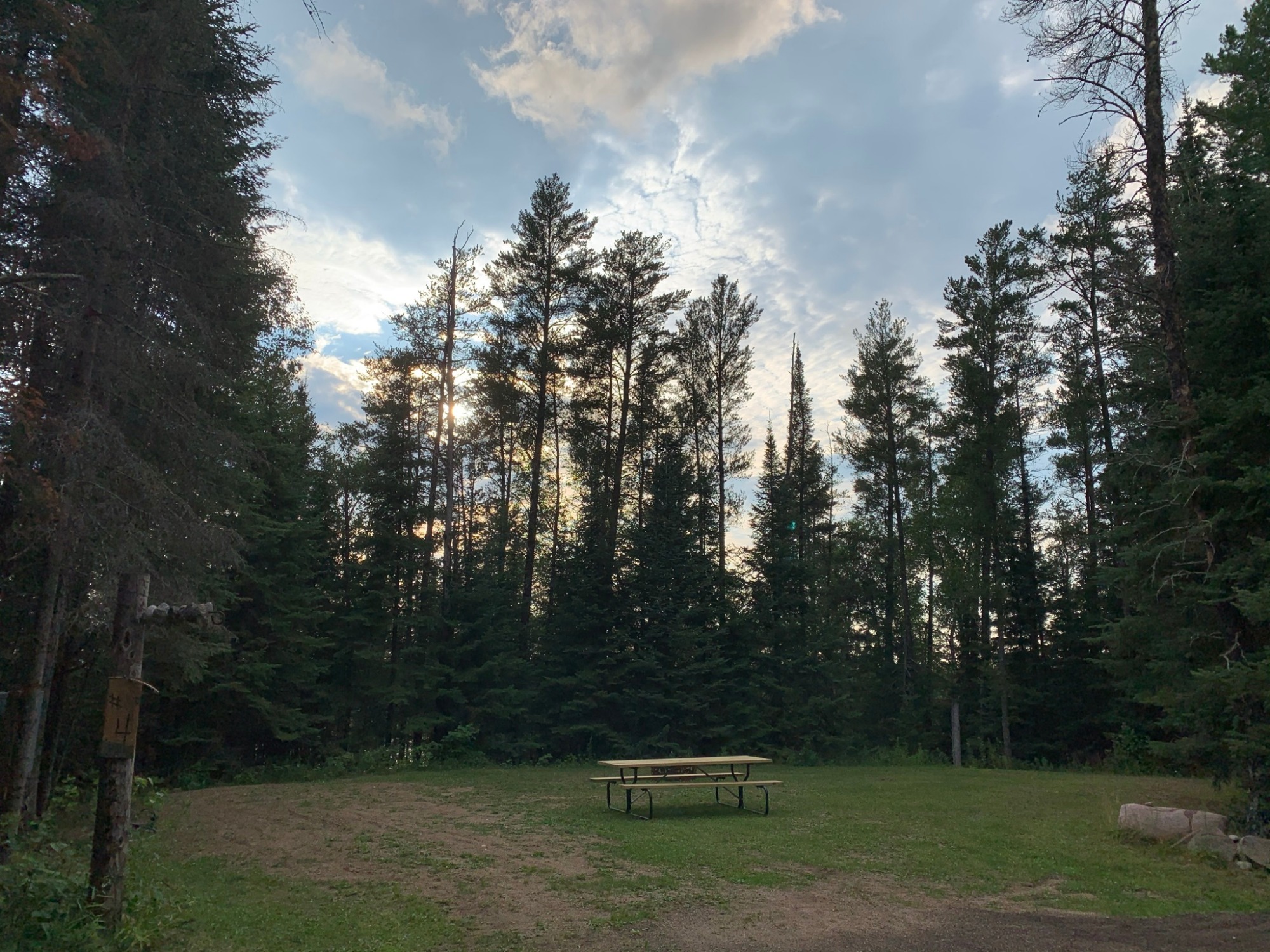 These secluded sites are tucked back in the woods along Berg lake. There is a bank of trees between the sites and the lake so the lakeview is partial but beautiful. Each site has a picnic table and fire pit, a frost free hydrant (water) and a 50amp plug in. Right down the trail from the spacious lake picnic area, kayaks and dock house. You must have a bathroom onboard your RV to stay back here since the showerhouse is in the main campground! There is still an outhouse near if wanted. Your RV can be a maximum of 24', if you are not such a great driver... 20'. It is a windy woods rd.